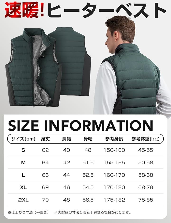 5秒速暖。9カ所ヒーターで首から腰まで効率よく温める。