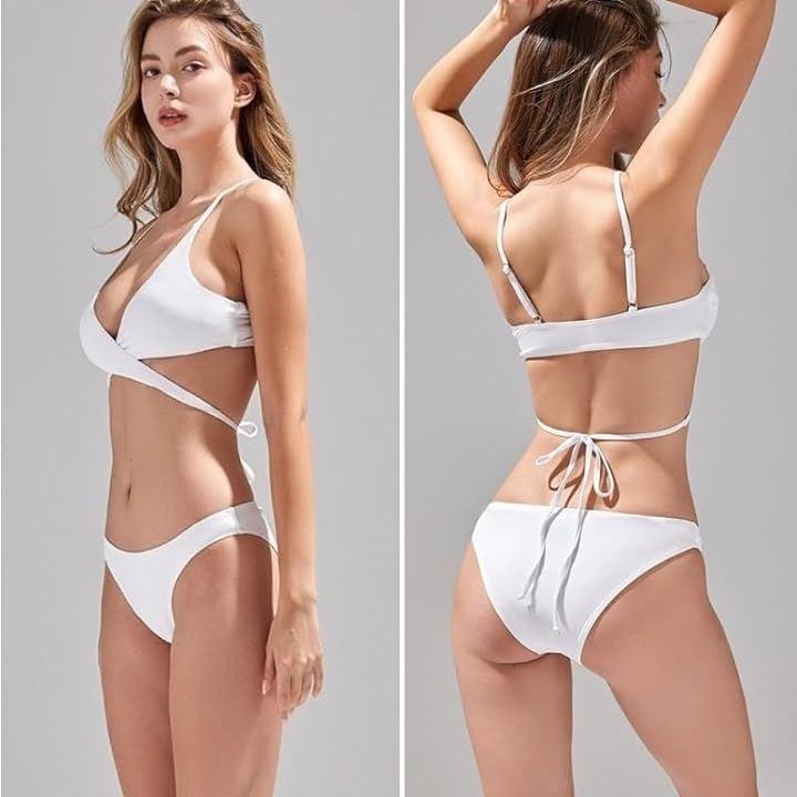トレンド感とスタイルアップを両立できるクロスデザインがハイセンスなビキニ水着。
