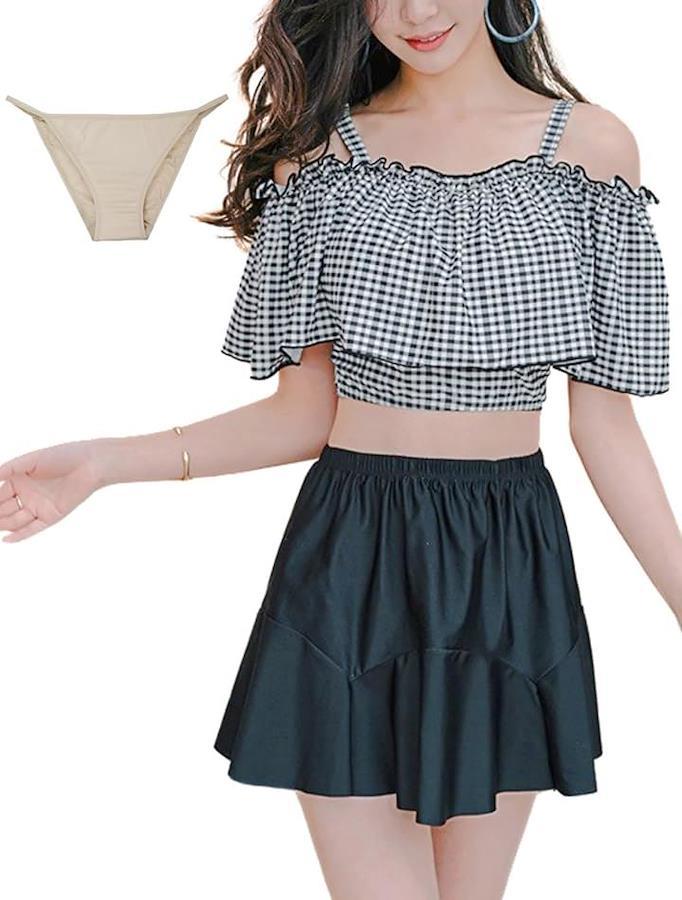 20代から40代の女性にぴったりのスタイルで、トップス、ショーツ、スカート、インナーパンツの4点セットが充実したタンキニ水着は、海水浴やプールでの使用に最適です。