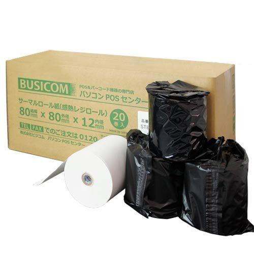 ロール紙サイズ:幅80mm×外径80mm×内径12mm (80×80×12) 入り数:20巻入 1巻毎に黒ポリ包装