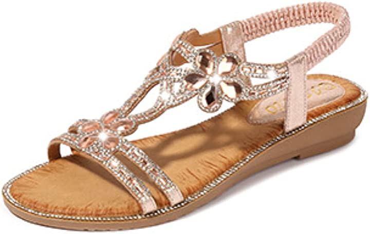 ビジューサンダルレディースフラットヒールきらきらラインストーンぺったんこローヒール