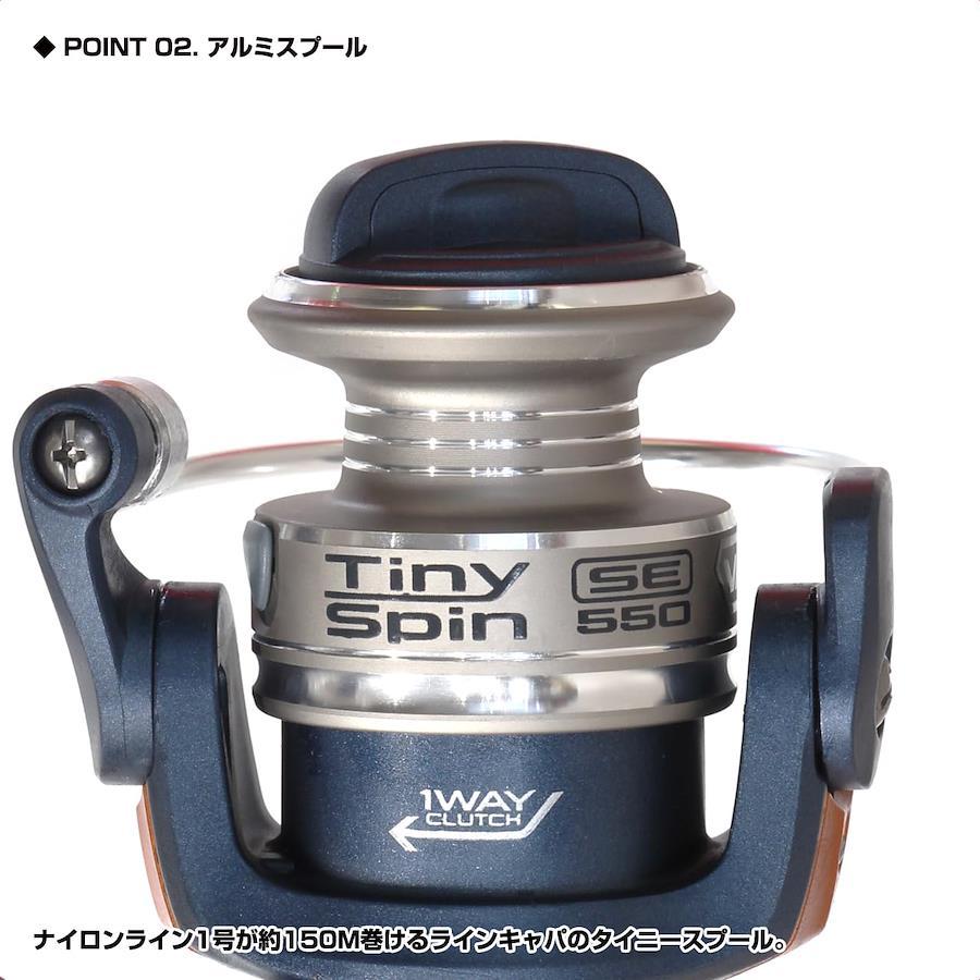 コンパクトな550番サイズのスピニングリールがセカンドエディションとなって復活です。ビセオカラーの小型スピニングリールでライトラインが扱いやすいコンパクトボディ、3ボールベアリングを内蔵したシルキーな回転。別売ロッドのテレショーティーSEやガッシーと組み合わせるとバツグンのカラーコーディネートが可能です。トラウトやアジング、ワカサギ釣りなど幅広い釣種に最適なスピニングリールです。