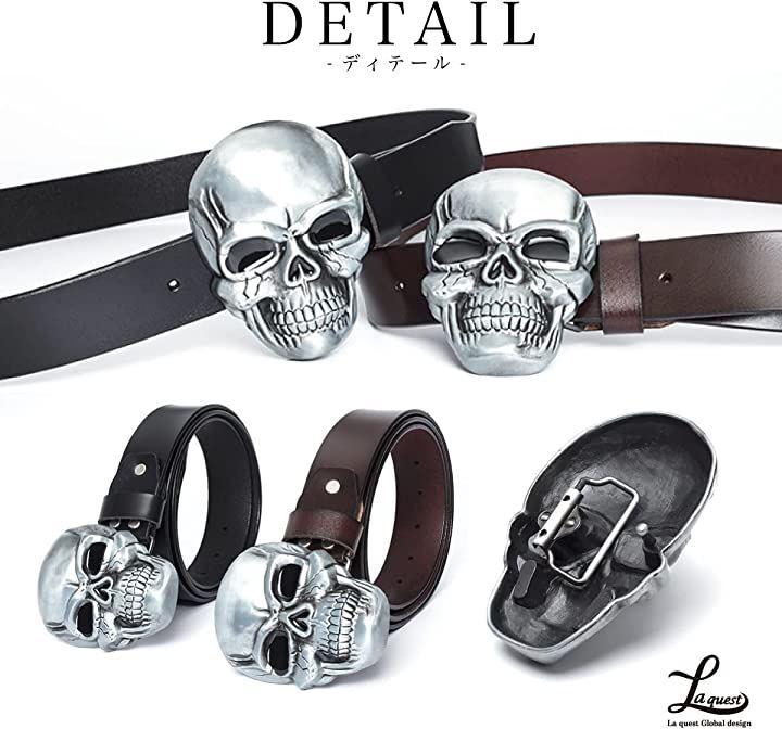 ・存在感ある超でかメタルスカルバックルが特徴的なレザーベルトです。