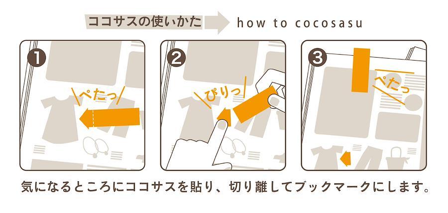 【切って離して貼れるふせん「ココサス」! 】気になるページにブックマークしたけれど、いざページを開くとどの情報が大切か忘れることも・・・そんな悩みを解消! 「ココサス」は、色や形でリンクするから大事な情報がひとめでわかる、新感覚の付せん!チェックしたいところに貼ったら、ミシン目で切り離し、長い方をページの端に貼ってブックマークに。ページを開けばマークした場所がすぐにわかる、便利な付箋です。地図やカタログにはもちろん、辞書やテキストにも最適。机に、ペンケースに、手帳に、あって便利なグッズです。