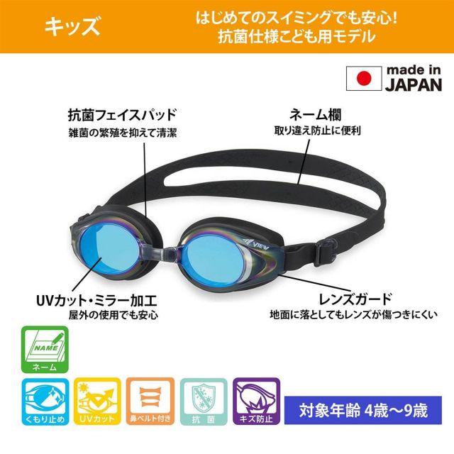 スタイル:BLY◆商品名:[ビュー]日本製屋外プールでのまぶしさを軽減するミラータイプ子ども用スイミングゴーグル4~9歳用設計だから水がはいりにくい抗菌機能付V710JMRBL