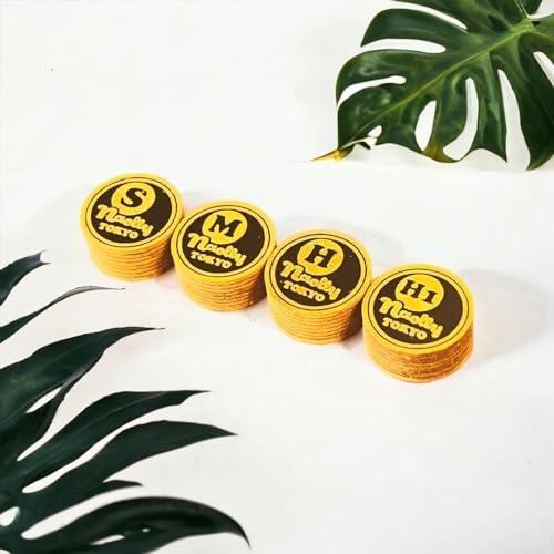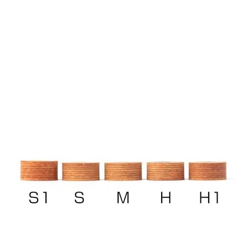 トッププロの細かすぎるわがままを、革のプロが最上級の革を使い形にしたこだわりの結晶!革屋NAOLLYだからこそできたこと。それは、厳選した革を選別・ストックし、その中でもさらに厳選した部位のみをタップに採用したことです。この商品は、競技の中でも最も繊細な動点・突き出し・手玉の表現が必要なスリークッション競技に焦点を当て、2007年の世界チャンピオンである【梅田竜二プロ】をはじめ多くのビリヤードプロの協力を得て作り上げました。38回の試作を経て、さらにポケット競技のトッププレーヤーにもテストしていただき、適正な固さを厳選しました。硬度はS1/S/M/H/H1の5種類です。特にH1はスリークッション選手向けで、試作段階から異なる4種類のHの中からこの固さを選び抜きました。(もちろんポケットにも使用可能です)NAOLLYタップの特徴は、剥離や壊れにくさ、減りにくさ、安定した性能、長い寿命です。飛びも少なく、オーバースピンもなく、よく引けるというコメントが多く寄せられています。横のふくらみに関しては、最初は2回~3回ほど削る必要がありますが、3回目を迎える頃からほとんど手を加える必要がなくなり、安定性が増します。また、装着したばかりでも安定感があり、すぐに試合で使用することができます。厳しい検品を通過した、こだわりの詰まった結晶をぜひお楽しみください。タップをご自分で取り付ける方には、革を切った瞬間に革の良さを実感していただけると思います。ぜひ革本来のパワーや質感、特性、しなやかさを感じてみてください。 素材 : 厳選豚革 積層 : 積層 8枚 硬度 : H 直径 : 14mm 生産 : 日本