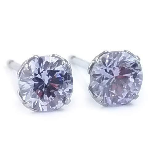 純チタン製(本体・キャッチとも) イオンプレーティングスワロフスキーエレメンツカット LAVENDER CUBIC ZIRCONIA キュービックジルコニア両耳用 トップ:5x5mm 有効軸長:9mm/全長12mm 軸太:約0.8mm(※通常ピアスは0.6mmです)イオンプレーティング被膜は金属アレルギーの心配の無いチタン化合物を使用しています