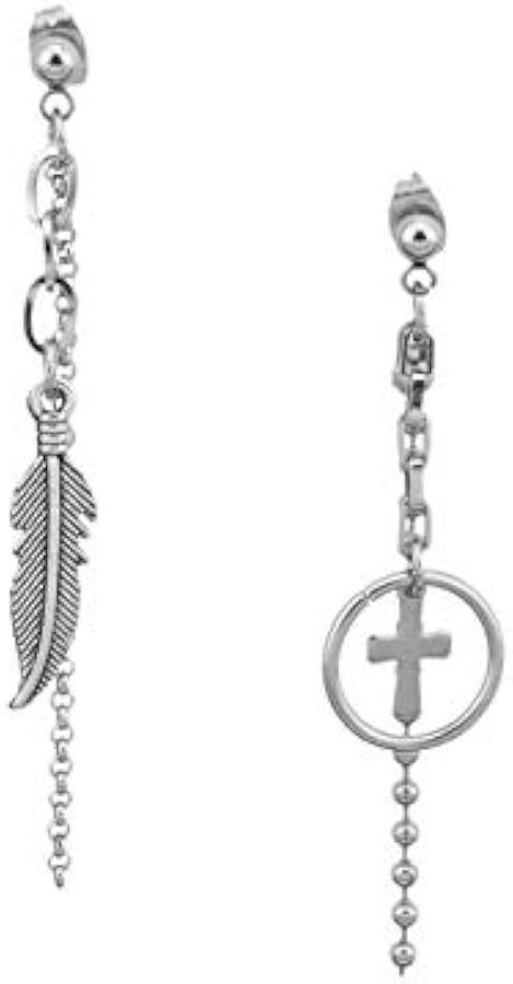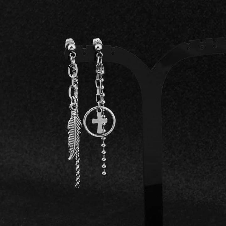 「トレンド感あふれる左右アシンメトリーデザイン」羽モチーフとクロスリングを組み合わせた、左右で長さ・形の異なるデザインが動くたびに揺れ、顔まわりを華やかに見せます。