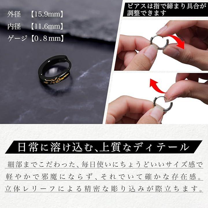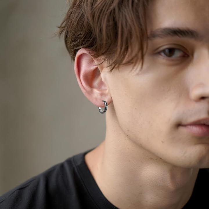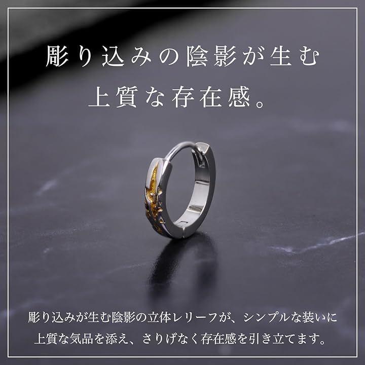 「立体レリーフデザインのメンズフープピアス」 シンプルながら力強さを感じさせる立体的な彫り込みが特徴のフープピアス。
