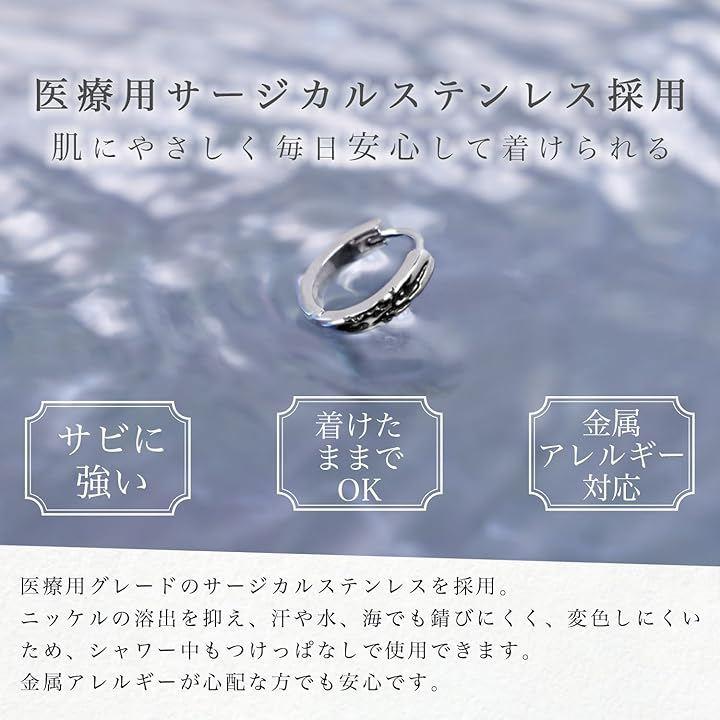 医療用サージカルステンレス316L製で、金属アレルギーの心配もなく、シャワーも海もそのままOK。
