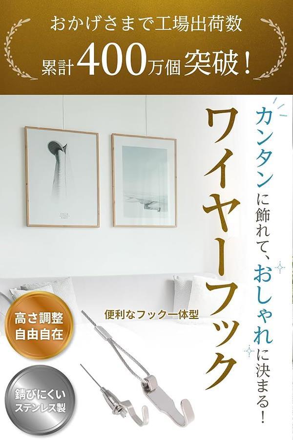 ピクチャーレール ワイヤー フック 一体型インテリアコーディネーター監修 耐荷重40kg 高さ調節