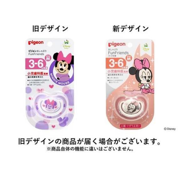 製品の特徴●ピジョン おしゃぶり ファンフレンズ(Pigeon FunFriends)3~6ヵ月/Mサイズ(※リニューアル中のため、旧デザインが届く場合がございます。お選びいただけませんので、予めご了承ください。)●赤ちゃんの口腔研究に基づいて開発された、上手に吸えて、落ち着き効果の高いおしゃぶりです。●赤ちゃんが自然に舌を動かしやすい乳首形状。●月齢にあわせて、発達段階に合わせたサイズを使うことで、赤ちゃんが上手に吸えて、落ち着き効果が高まります。●アゴの負担の少ないやわらかさの乳首で、おくちの動きに柔軟にフィット。●吸っているときに口から落ちにくい安定感のある設計。●赤ちゃんがおくちにくわえやすい重さ。●歯の発育を考えた小児歯科医監修(井上美津子先生)。●消毒・除菌方法:煮沸/スチーム〇、レンジ×、薬液○※おしゃぶりは使用時間や時期への配慮が必要です。1才を過ぎたら1日の使用時間を徐々に減らし、2才半までには使用をやめるようにしましょう。※赤ちゃんは思わぬ行動をすることがあります。必ず保護者の目の届く範囲でご使用ください。