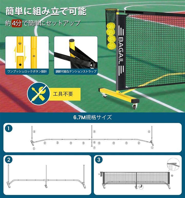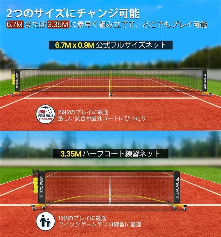 「6.7M/22フィートの規定サイズ」BAGAILの最新のポータブルピックルボールネットは、USAPAの規定に準拠したフルコートサイズ(高さ0.9M x 幅6.7M)を備えています。