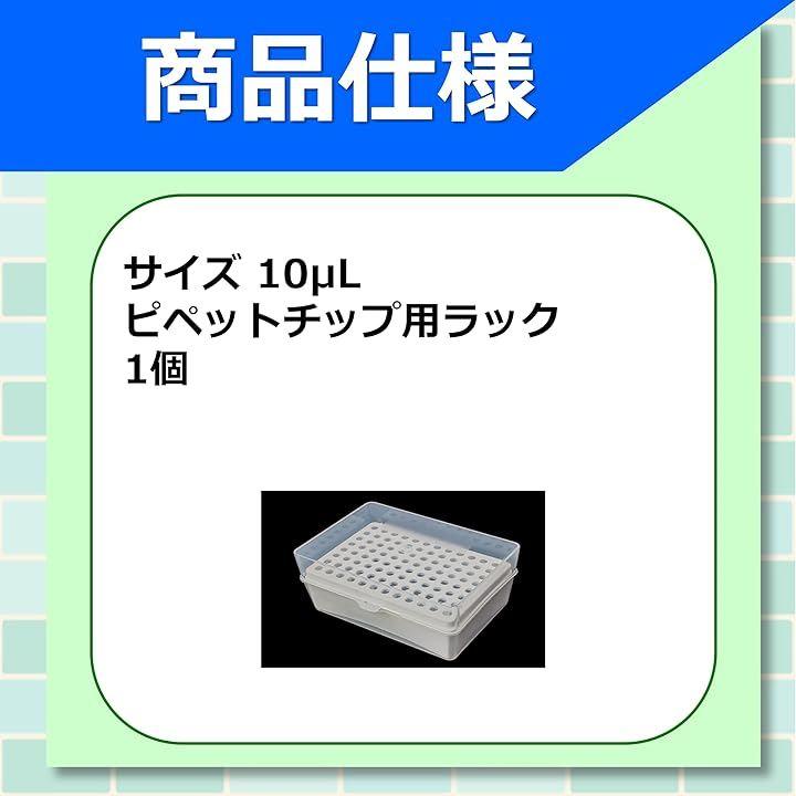 「 製品仕様」 サイズ:標準的な96本収納タイプ 材質:耐久性のあるプラスチック 対応チップ容量:10μL カラー:半透明 数量:1個