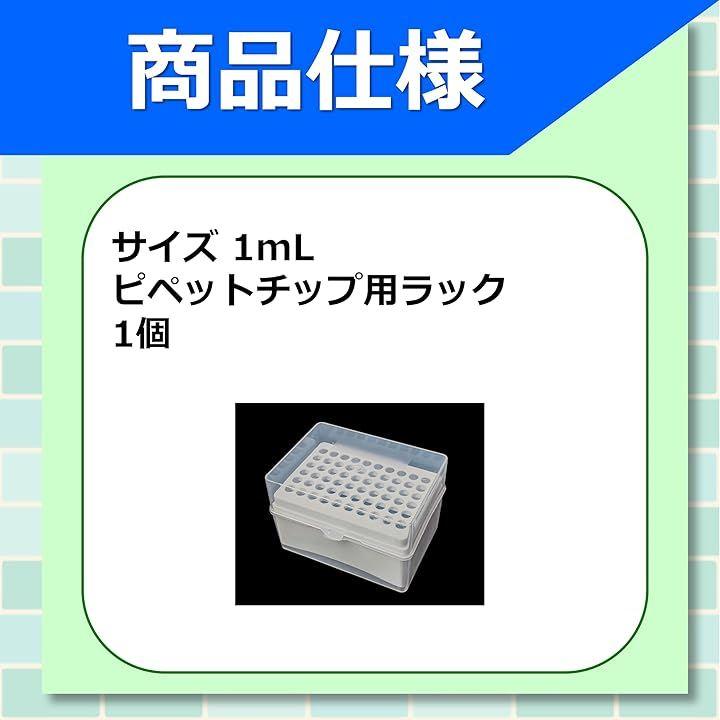 「 製品仕様」 サイズ:標準的な96本収納タイプ 材質:耐久性のあるプラスチック 対応チップ容量:1000μL カラー:半透明 数量:1個