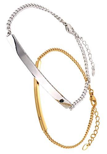 商品詳細 【メンズ】 ブランド Pinky&Dianne (ピンキーアンドダイアン) 素材 シルバー950(ロジウムコーティング) ブラックジルコニア チェーン 長さ:17~20cm(3cmアジャスター付き) チェーン幅 約2.8mm(喜平チェーン) 重量 約8.3g バーのサイズ(金具含まず) 縦 約0.5cm, 横 約5.5cm 厚み 約0.2cm 【レディース】 ブランド Pinky&Dianne (ピンキーアンドダイアン) 素材 シルバー950(イエローゴールドコーティング) キュービックジルコニア チェーン 長さ:15~18cm(3cmアジャスター付き) チェーン幅 約2.1mm(喜平チェーン) 重量 約3.9g バーのサイズ(金具含まず) 縦 約0.3cm, 横 約4.0cm 厚み 約0.2cm