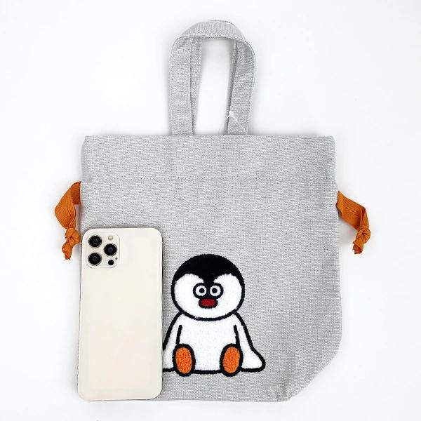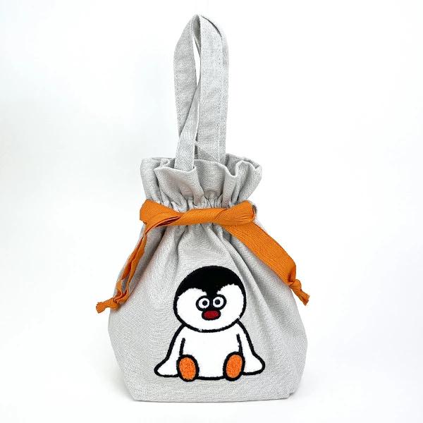 世界でいちばん有名なペンギン PINGUを、松本セイジが描き下ろしたコラボアート◎マチ付きで、スマホなど必需品を入れても余裕のある大きめサイズの巾着バックです☆彡絵柄部分は相良刺繍!