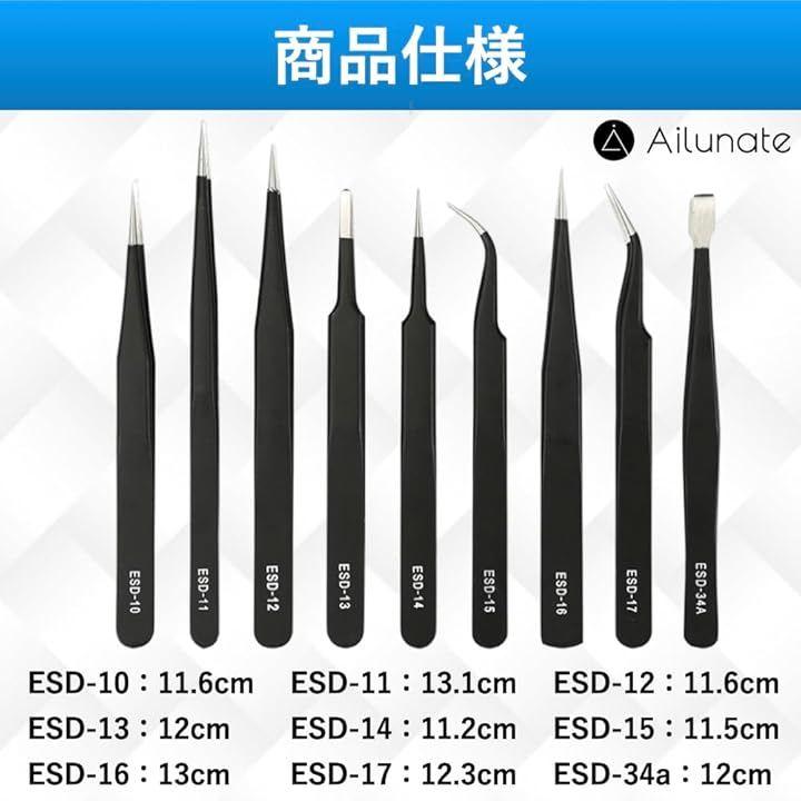全てのピンセットに帯電防止加工が施されており、精密機器の修理にも活用していただけます。