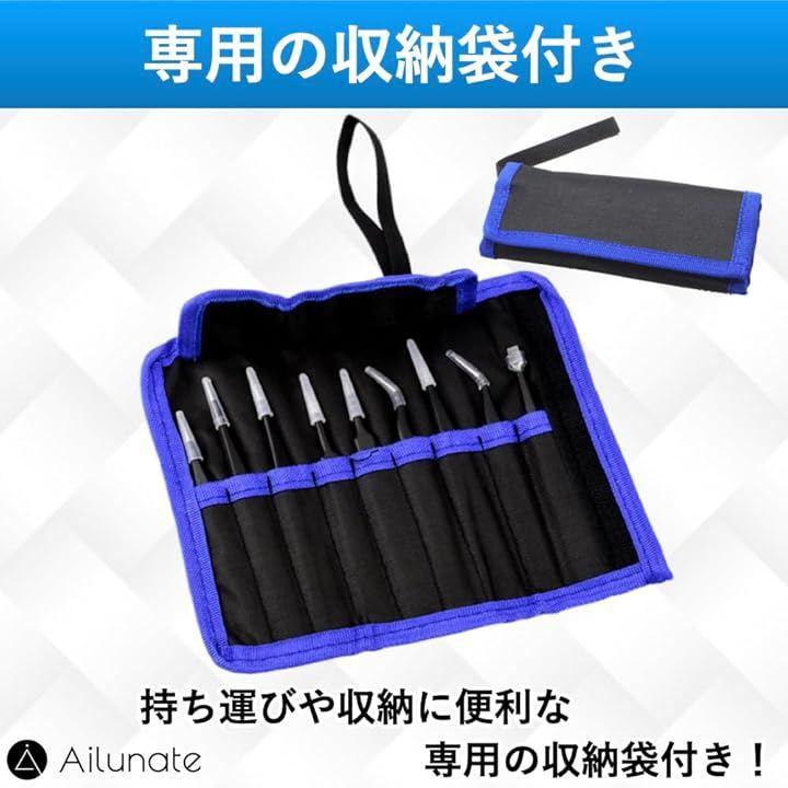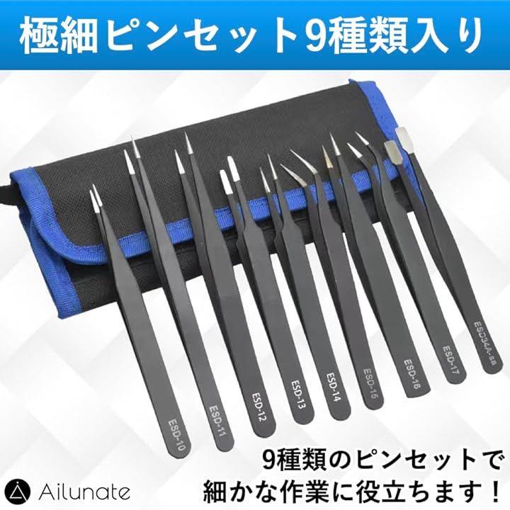「極細ピンセット9種類入り」先端形状が異なる9種類の極細ピンセットです。