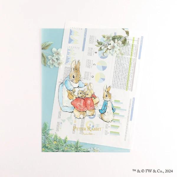 ピーターラビットの自然あふれた世界と元気に遊ぶ姿を優しい配色で落とし込んだA4サイズのクリアファイルです!