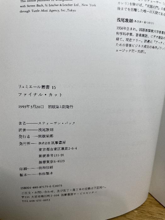 a03-251221002005015-000ファイナル・カット: 天国の門製作の夢と悲惨 (リュミエール叢書 15) 筑摩書房 スティーヴン バック