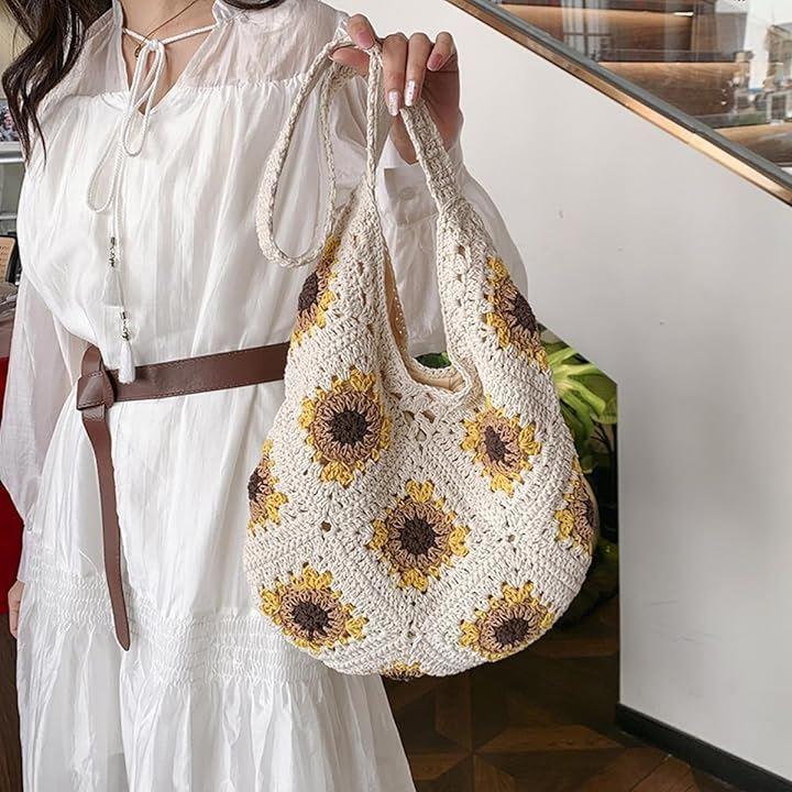 ひまわりのような編み模様が、夏らしい軽やかさと華やかさを演出。