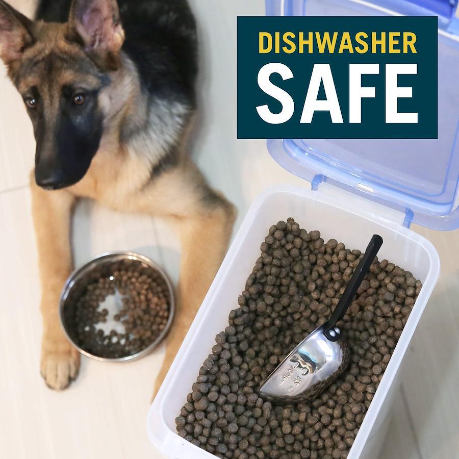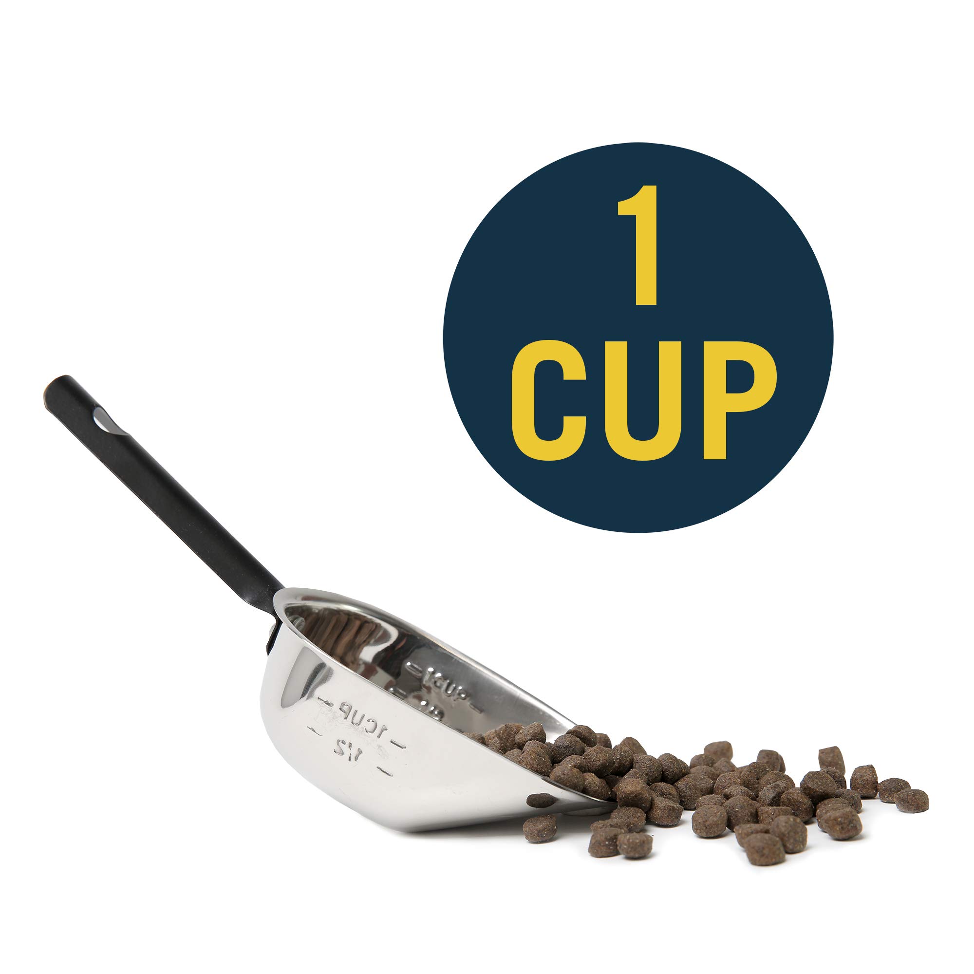 直接フードに手をふれることなく、衛生的に給餌できます1CUP、1/2CUPの目盛りつきです