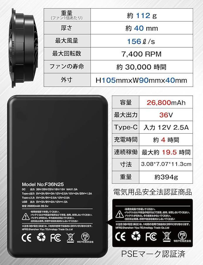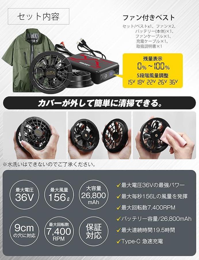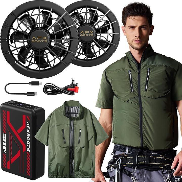 2025年最新モデル 36V高出力バッテリー&冷却ファン搭載半袖ベストのセット