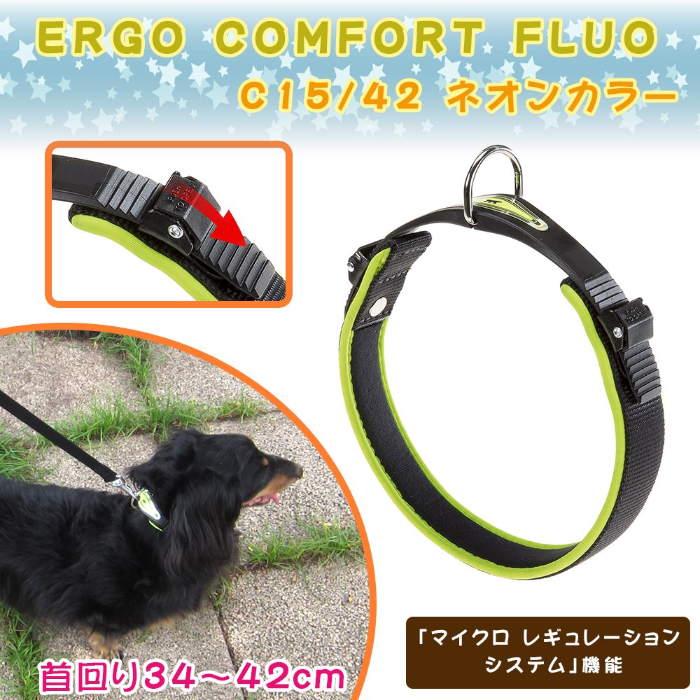 イタリアferplast社製。イタリアferplast社製。別売りのERGO COMFORT FLUOシリーズのリードと合わせて頂くことも出来ます。成長に合わせて調整が可能。エルゴノミック(生物工学・人間工学)に基づいた新しいタイプの首輪です。内側に柔らかいパットがついているのでワンちゃんにもやさしい構造になってます♪犬種を選ばないシンプルなデザイン首輪の登場です。■首回り34~42cm■首輪幅:15mm■適応体重:~30kgまで