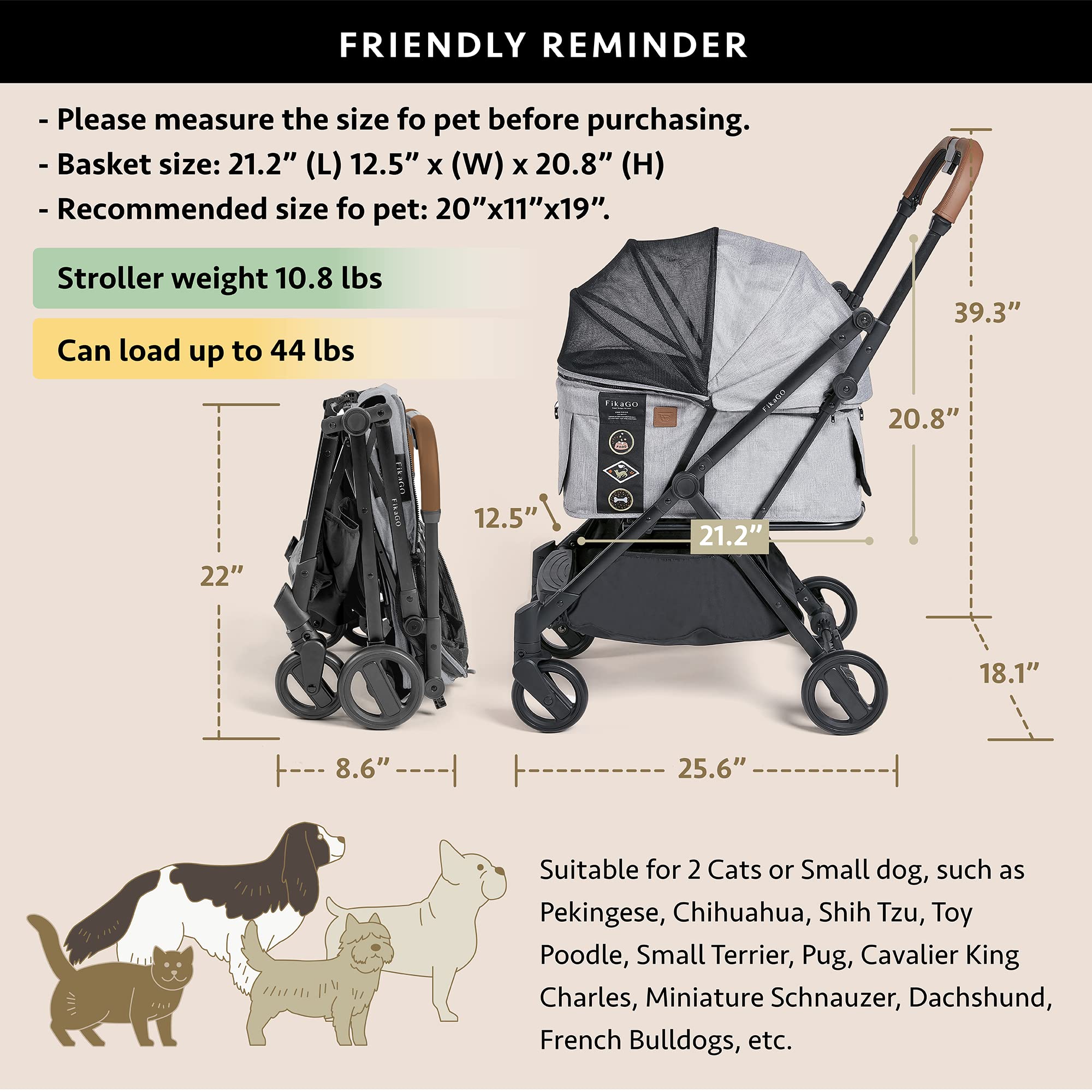 【FikaGOとは】FikaGOは台湾生まれのペット用品ブランド。Fikaはスウェーデン語で「コーヒーブレイク」のこと、そして同僚や友人がコーヒーやお茶を飲み、思いついたことを共有する時間を作ることを意味します。フィカは生き方であり、スウェーデンの文化の重要な軸となっています。FikaGOはそんな北欧の実用的な美学を支持し、実用的で安全でありながら味わい深いペット製品の開発・生産を目指しています。/【ボタン一つでサッと収納!1秒オートクローズ】ハンドルのボタンを押すだけで、サッと自動で折りたたむことができる、画期的なオートクローズのペットカートです。開くときも片手でパッと引き上げるだけの簡単仕様です。/【超コンパクトで軽量5.3kg。持ち運びも収納もラクラク!】軽量5.3kg、折りたたみ時は46×22×56cmのコンパクト設計。ご自宅や、車載時にも収納場所を取りません。車体には持ち運び用のグリップが付いているので、楽に持つことができます。/【前後のメッシュ窓で通気性抜群】幌とキャビンの前後に1つずつ、合計4箇所のメッシュ窓が風を通し、通気性抜群。ペットが快適に過ごせます。幌の後部と、キャビン前後のメッシュ窓は、フラップで閉じることもできます。※幌前面のメッシュ窓は閉じることができません/【サスペンションタイヤで走行時の振動を軽減】前輪にはサスペンションを搭載。路面のガタ付きなど走行時にキャビンの振動を和らげ、ペットのストレスを軽減します。/【幌はフルオープン可能】ガバッと全開してペットの乗せ降ろしがしやすく、またファスナーでぴったり閉じるので小さなペットの抜け出しを防止します。/【手洗いOKなキャビン内マット】底板にあるマットは手洗いOK。またキャビンカバーの部分手洗いも可能なので、いつも清潔に保つことができます。/※本製品に付属する専用リードは1本のみとなっております。