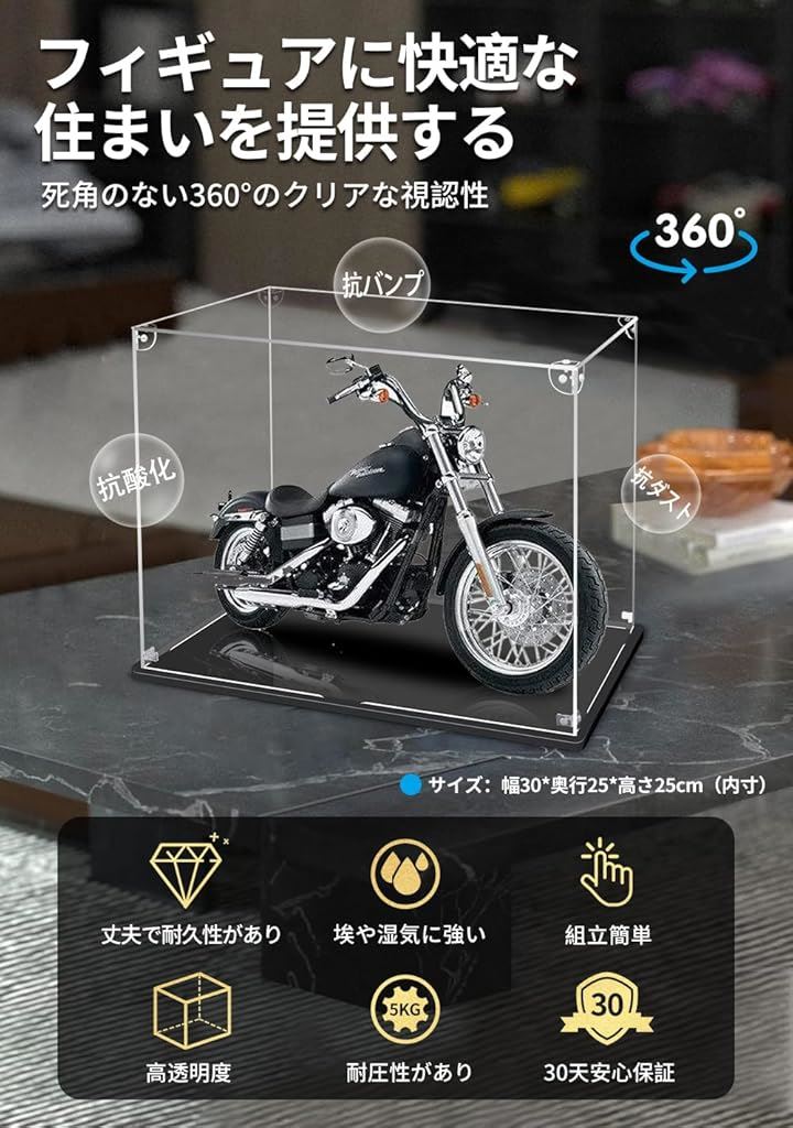 「サイズ」幅30x奥行25x高さ25cm、横長のフィギュアやモデルのディスプレイに最適。