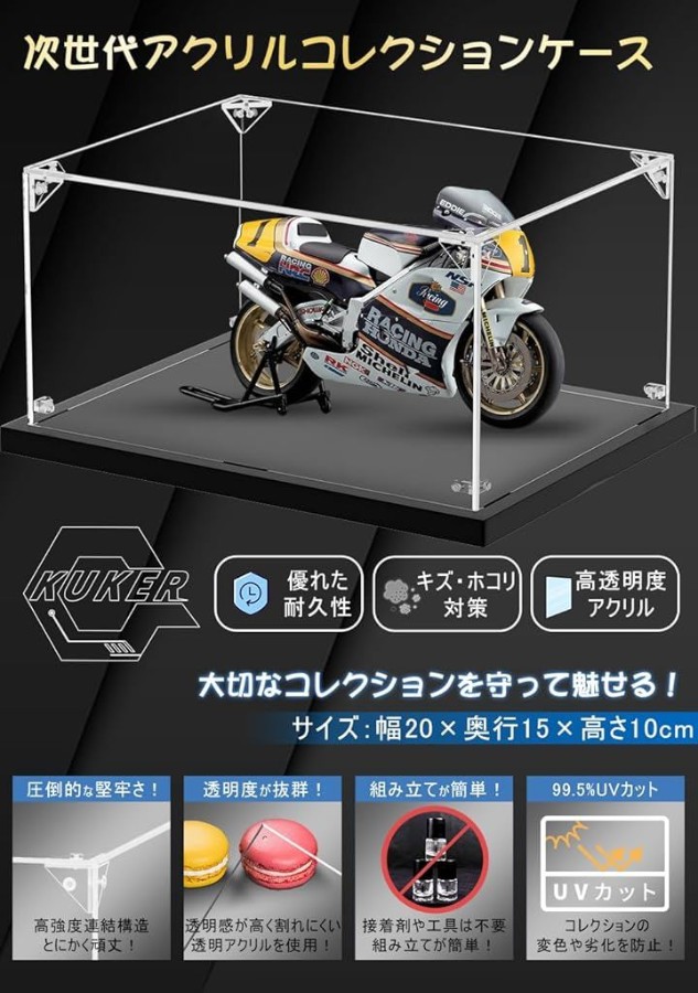優れた耐久性と高い透明度を兼ね備えているため、ホコリやキズから守ると同時にコレクションをアクリル越しでもキレイに魅せます。