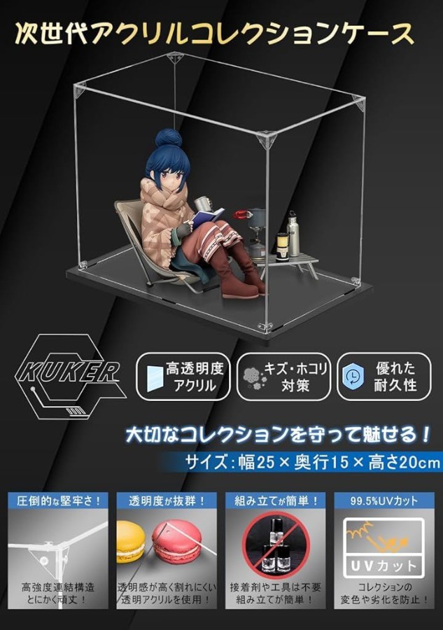 優れた耐久性と高い透明度を兼ね備えているため、ホコリやキズから守ると同時にコレクションをアクリル越しでもキレイに魅せます。