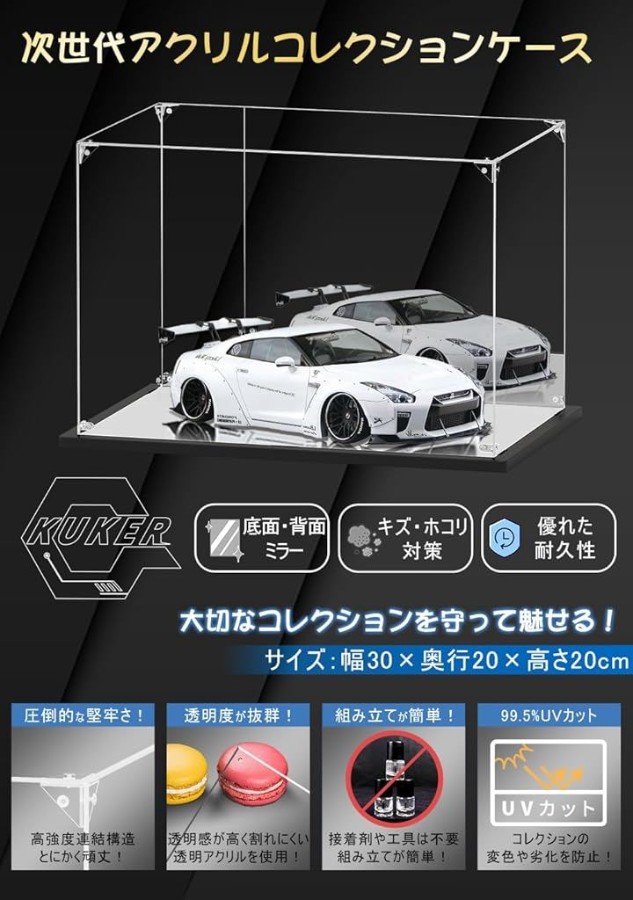優れた耐久性と高い透明度を兼ね備えているため、ホコリやキズから守ると同時にコレクションをアクリル越しでもキレイに魅せます。