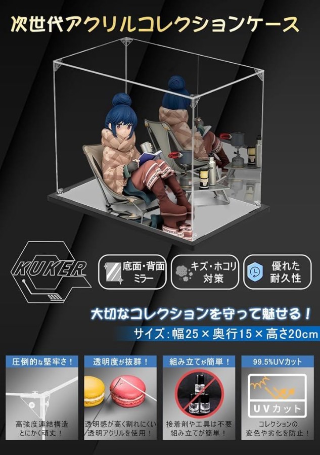 優れた耐久性と高い透明度を兼ね備えているため、ホコリやキズから守ると同時にコレクションをアクリル越しでもキレイに魅せます。