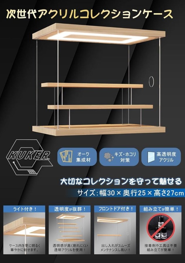 「高透明アクリル」UVカット高透明アクリル素材を採用、コレクションがアクリル越しでもキレイに魅せます。