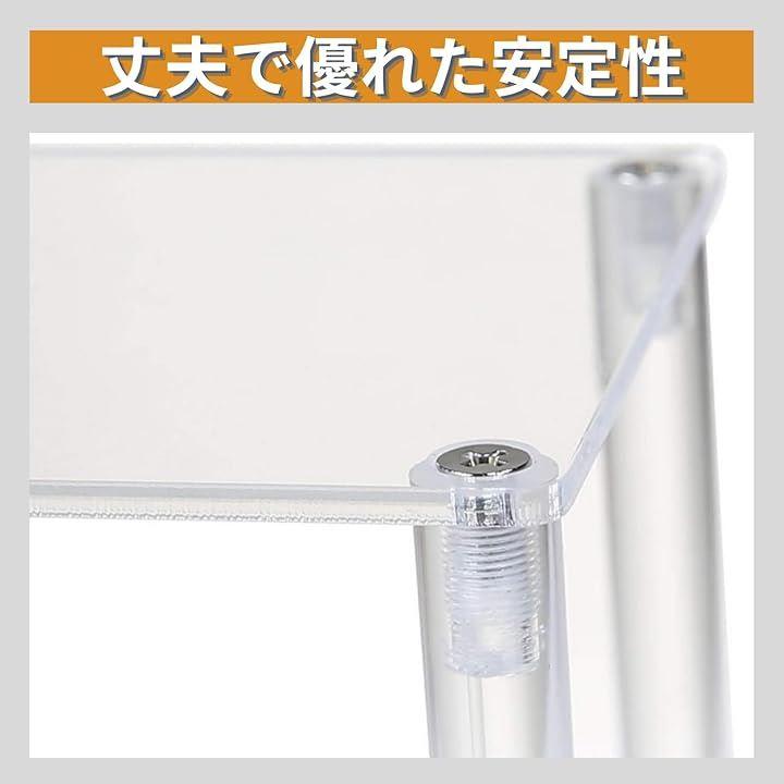 「丈夫で優れた安定性」アクリルディスプレイスタンドは透明度の高いアクリル製で、ガラスよりも軽くて丈夫で、安定性に優れ、お手入れも簡単、太いサポートレッグは展示したいアイテムを支えるのに十分な強度があり、立体的な効果と奥行きを生み出します。