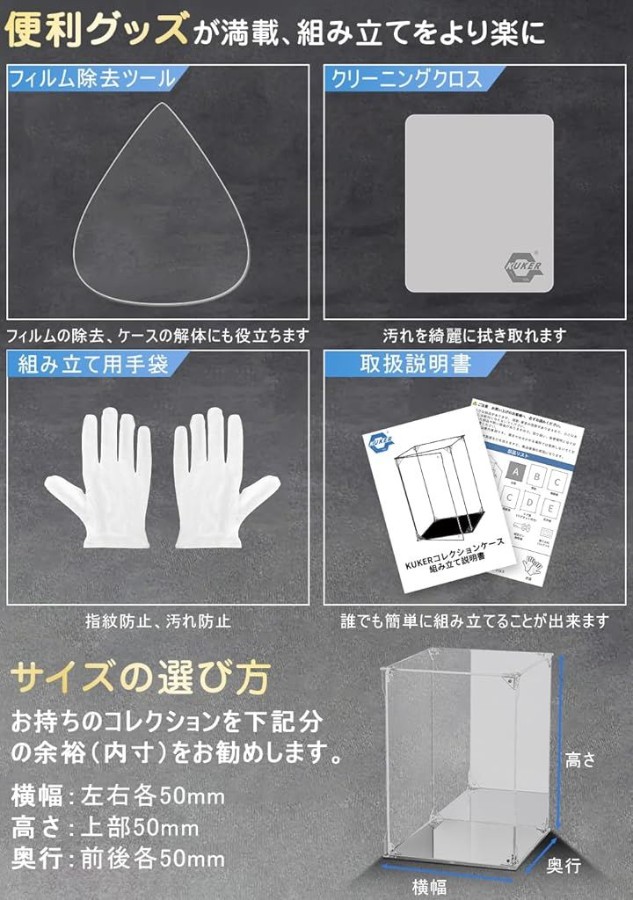 「高強度連結構造」次世代フィギュアケースの登場です。衝撃や揺れでも崩れない三角コネクタ構造により堅牢性を実現。