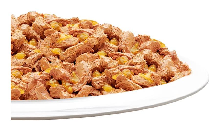 1歳までの子ねこが食べやすい小さめフレーク。 やわらかくほぐしたツナのうまみをジューシーなゼリーで包み込んだごはん。原材料:肉類(チキン、ビーフ、家禽ミール 等)、小麦たんぱく、魚介類(ツナ 等)、鶏脂、ぶどう糖、アミノ酸類(タウリン)、ミネラル類(Ca、P、K、Na、Cl、Mg、Fe、Cu、Mn、Zn、I)、増粘多糖類、ビタミン類(A、D、E、K、B1、B2、パントテン酸、ナイアシン、B6、葉酸、ビオチン、B12、コリン)、着色料(酸化鉄)保証成分:たんぱく質:13%以上、脂質:3.4%以上、粗繊維:0.5%以下、灰分3%以下、水分82%以下原産国:タイ