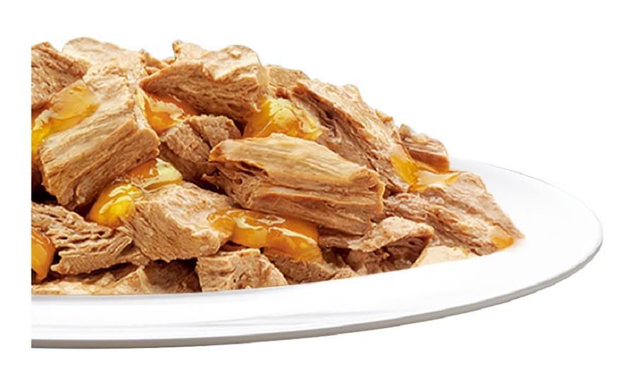 やわらかくほぐしたチキンのうまみをジューシーなゼリーで包み込んだごはん。原材料:肉類(チキン、ビーフ、家禽ミール 等)、小麦たんぱく、鶏脂(オメガ6脂肪酸源)、ぶどう糖、アミノ酸類(タウリン)、ミネラル類(Ca、P、K、Na、Cl、Mg、Fe、Cu、Mn、Zn、I)、増粘多糖類、ビタミン類(A、D、E、K、B1、B2、パントテン酸、ナイアシン、B6、葉酸、ビオチン、B12、コリン)保証成分:たんぱく質:12%以上、脂質:2.8%以上、粗繊維:0.5%以下、灰分3%以下、水分82%以下