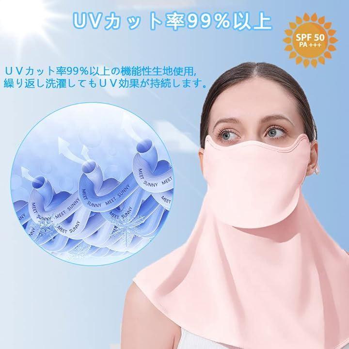 紫外線カット率98%以上を実現し、ネック、顔、目元から目尻までしっかりカバー。