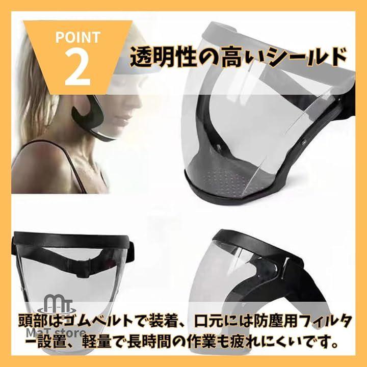 頭部はゴムベルトで装着、口元には防塵用フィルター設置、軽量で長時間の作業も疲れにくいです。