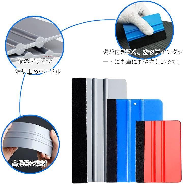 「多用途」車やバイクへのラッピングツールとしてはもちろん、その他にもスマホやタブレットの保護フィルム、広告フィルム貼り付け時のエアー抜き、窓や壁のシールやフィルムを用いたデコレーション、タイルシートの張り付け、家具やキッチンキャビネットへのカッティングシートなど色々なDIYシーンで活躍してくれます。