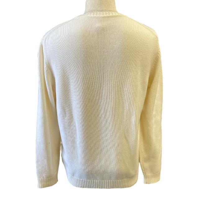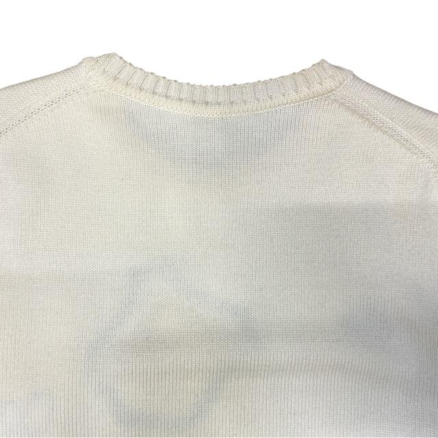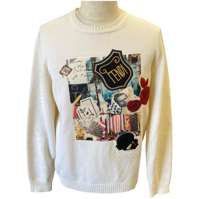 【ブランド】FENDI フェンディ【商品名】ニット【商品番号】FZY020A93W【カラー】オフホワイト【サイズ】表記サイズ48 (平置き採寸):着丈 70cm 身幅 55cm 肩幅 44cm 袖丈 48cm【素材】ウール100%【付属品】-【ランク】ABランク【コメント】タグ欠損 シミ(小/写真参照)【管理番号】1020d1320a商品情報