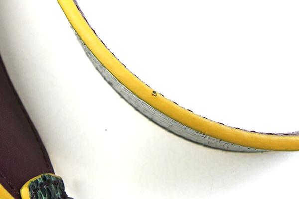 | 状態 | 外側:パイソンウロコの所々にメクレ多数あり。フチに若干薄汚れあり、1ヶ所メクレあり。 内側:幾つか薄キズあり。 金具:小キズ、クスミあり。 |