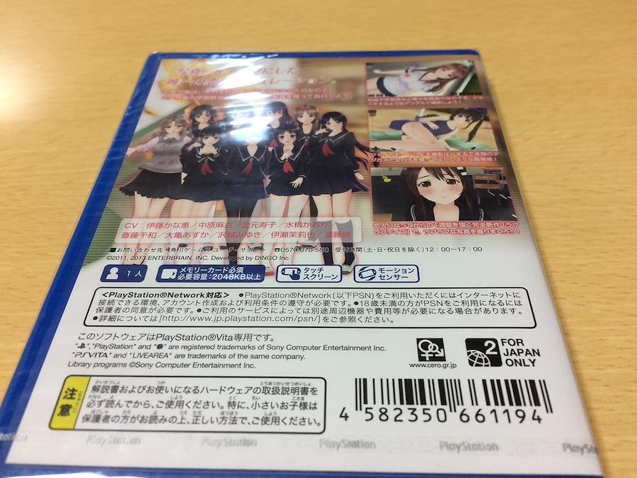 『ファインダーの向こうのキミに……恋をした。』 ・「写真」をテーマにした唯一の恋愛シミュレーションが、大幅にパワーアップして、PlayStation Vitaで登場! ・告白後の1週間を描いた「ラブラブデイズ」を完全新作として追加。本編で恋人となったヒロインと、ラブラブな1週間を過ごすことが出来る! ・PSVitaのグラフィック性能を活かし、ヒロインを初めとする3DCGを大幅にクオリティアップ! ・基本60fps表示を実現し、なめらかにキャラクターが動きます。 ・タッチスクリーン、モーションセンサーにより、より簡単に、より臨場感のある撮影が可能! PSP版より、アングル、ズームの自由度が飛躍的に向上。 ◆ゲームの目的 2ヶ月後の学園祭で、意中の女の子に告白して、成功させること。 出会いから、告白までを純愛で描きます。 ★フォトセッションがよりパワーアップ! 3種類の操作モードを搭載! ●【ファインダーモード】 PSP版をより発展させた、アナログスティックを用いた撮影モード。アナログスティックならではの細やかな操作で、撮影することが出来ます。 ●【タッチモード】 画面に直接タッチして撮影するモード。ズームやアングルを直感的に操作し、撮影することが出来ます。 ●【ジャイロモード】 PSVitaを傾けることによって、PSVitaをあたかも本物のデジカメのようにして、撮影することが出来ます。 ・細かな操作で微調整しつつ、写真の精度を上げたい時は「ファインダーモード」。直感的に簡単な操作で写真が撮りたい時は「タッチモード」。臨場感たっぷりに楽しく写真が撮りたい時は「ジャイロモード」など、使い分けての撮影が楽しい! ・新規要素! フォトセッションでのアングルの自由度がPSP版より飛躍的に向上。女の子のスカートをよりローアングルに、バストアップをよりハイアングルに、顔や体によりズームアップして撮影可能! 自分だけの写真を撮影しよう! ★より美しくなったイベントシーンと、3キャラ同時登場イベント ・PSVitaのハードウェア性能を活かし、より美しくなったモデリングでイベントシーンを彩ります。 ・背景もさらにクオリティアップ! 背景だけ撮っても楽しい! ・3キャラ以上同時に登場するイベントもあり、ストーリーを彩ります。 ★完全新作! 『ラブラブデイズ』 ・『フォトカノ本編』での告白の翌日、女の子と恋人になっ