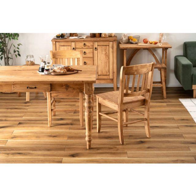 ●自然味溢れるカントリー調のチェアオイル仕上げのパイン材を着飾ることなく使い、ありのままの木材の風合いを活かしたダイニングチェア。いつもの暮らしにすっと馴染み、温かみのある空間を演出してくれます。