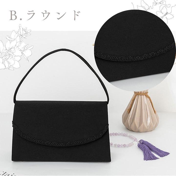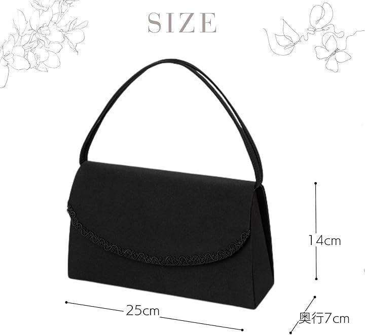 「品格と実用性を兼ね備えた、葬儀用フォーマルバッグ」 喪の席にふさわしい、控えめながらも洗練されたデザインのブラックフォーマルバッグ。