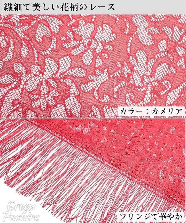 四方に施されたオリエンタル調のフラワー柄のレースは、大判で美しく着物和装に合わせるのもオススメです。