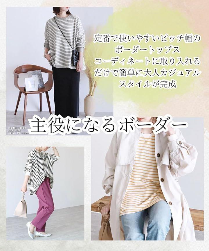 飽きのこないベーシックなデザインの無地、ボーダーカットソー “ちょうど良い”ゆったりシルエットで、1枚で着ても、雰囲気のある着こなしに。